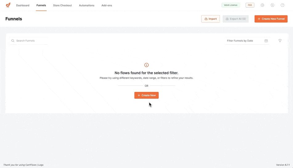 - Go to the CartFlows menu and click “Add New.”